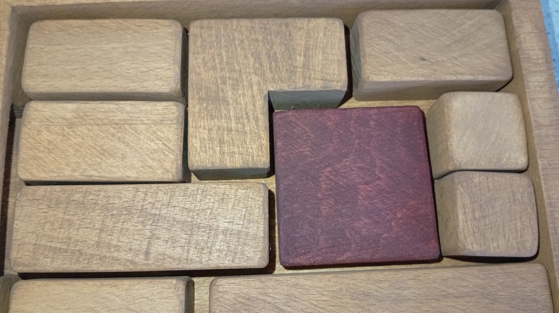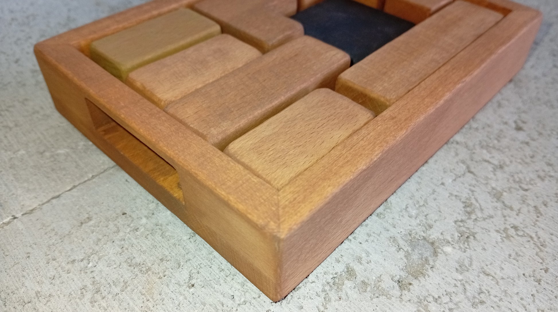 Chaque pièce est soigneusement taillée, poncée puis huilée à la main pour révéler la beauté naturelle du bois tout en offrant une prise agréable. Ce casse-tête de déplacement évolutif propose 3 niveaux de difficulté et 13 configurations de départ, permettant de rejouer à l’infini.